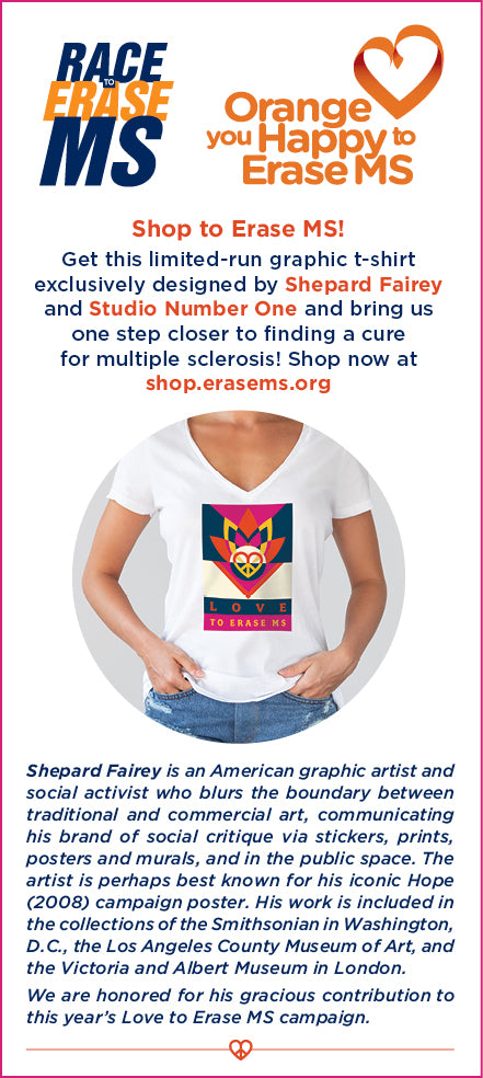 Shop to Erase MS! Get this limited-run graphic t-shirt exclusively designed by Shepard Fairey and Studio Number One and bring us one step closer to finding a cure for multiple sclerosis!